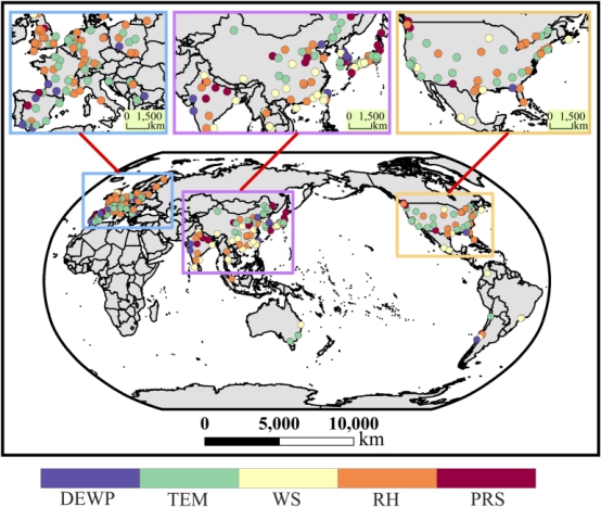基于全球城市的气象数据,通过广义加性模型(GAM)和多因素广义加性模型(MGAM)发现,温度、相对湿度和风速是影响臭氧变化的主要驱动因素,气象因素的协同作用对于理解臭氧变化至关重要。