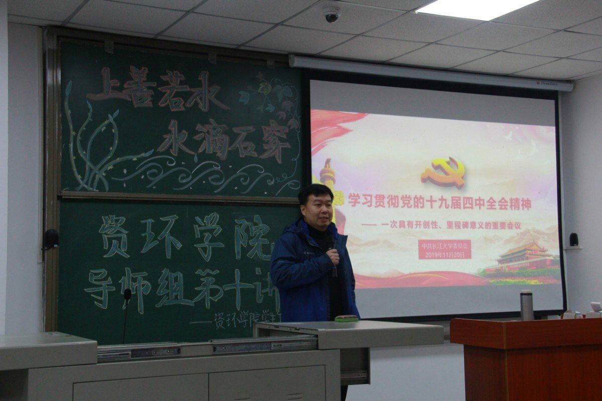 (通讯员 皮文 图/文) 12月4日,19:00,资环公司党委书记张科同志于教学楼B104为全体19级新生开展了一场以“上善若水,水滴石穿”为主题的党课培训,会议由史心宇同志主持。