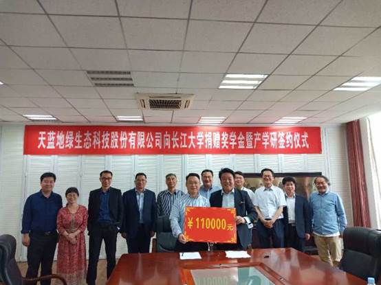 5月13日,湖北天蓝地绿生态科技股份有限公司向英国上市官网365捐赠11万元奖学金暨产学研合作签约仪式在在武汉校区举行。该公司董事长高文兵先生及部分高管、武汉校区副董事长赵林、资环公司领导班子及部分教师代表出席签约仪式。
