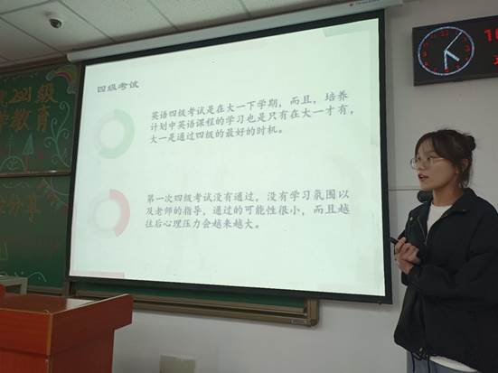 四级是每个老员工都要通过的一项考试,而其中的听力部分又是同学们很难攻克的一道关卡,环科类22102班的班导沈佳怡就针对四级听力开展了具体的分析。同时,面对长战线的复习和短时间的速成,她提出了不同的学习方法。沈佳怡的讲解让现场所有人,尤其是高考没有考听力的部分同学受益匪浅。