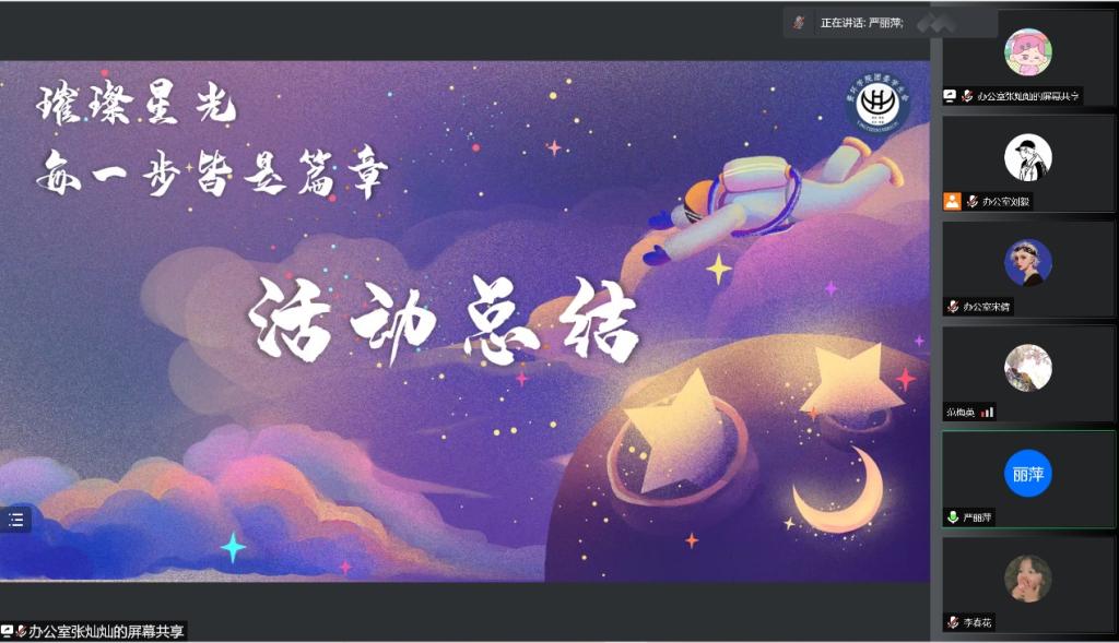最后,党委副书记范梅英老师对本次活动做出了精彩的总结,她说到:“本次活动举办的意义是非常重大的,咱们的大一同学们得向优秀的学长学姐们多多学习,吸取他们的学习、学干、科研经验充实自己的大学时光”。第六届幸福班级风采展暨资环之星风采展于21:30圆满落幕。这就是青春,充满着力量,充满着期待,充满着求知和斗争的志向,充满着信心和希望。