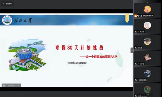 1月12日晚7时,资环公司召开动员大会,邀请公司罗杰教授与83位报名参加挑战的同学分享交流,同时出席会议的还有资环公司党委副书记范梅英老师和资环公司分团委书记严丽萍老师。