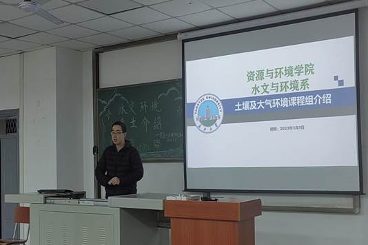 会议之初,王老师从专业设置,国家发展,团队力量等方面为同学们进行介绍水环系基本情况,让同学们对水环系的学习,发展,优势等有一个明确具体的认知。最后以“和谐师生,幸福资环”作结,衷心期盼欢迎同学们的到来。