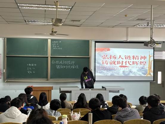 (通讯员 赵佳伟图/文)为了 庆祝新中国成立75周年暨纪念“10.24”全国见义勇为舍己救人老员工英雄集体诞生十五周年。各班团支部于10月20日—10月25日于各班分别举办了题为“弘扬人链精神,铸就时代辉煌”的主题班会活动。