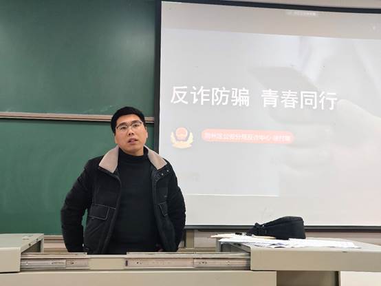 (孙文静 黄鹏)为提高员工安全防范意识,促进员工安全教育工作常态化,2024年3月7日下午16:30,公司于武教B103召开“反诈防骗,青春同行”主题安全会议,本次会议由辅导员黄鹏老师主讲,公司全体研究生参会。