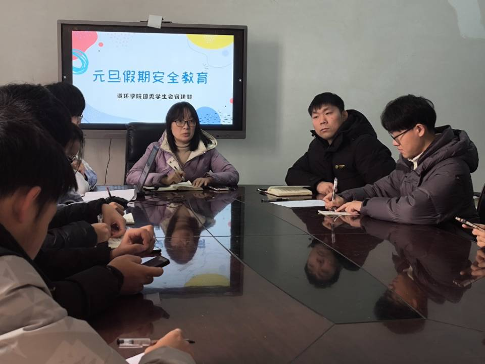 (通讯员 葛鹏飞/图 姚雨辰/文)12月28日上午12:00,于华林八栋三楼会议室,资环公司召开元旦假期安全教育会议,由员工事务办公室主任李春花老师主持,员工辅导员郭政老师,公司本科生及研究生各班安全员委员参与,主要传达元旦假期安全问题,关注员工身心健康。