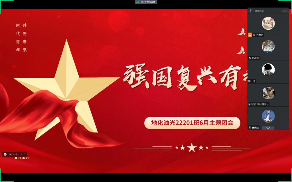 会议伊始团支书对此次团会主要内容进行了简单介绍。主要学习九个内容:1)学习习近平总书记给参与“澳门科学一号”卫星研制的澳门科技大学师生代表的回信精神2)学习习近平总书记在文化传承发展座谈会上的重要讲话精神3)学习习近平给上海市虹口区嘉兴路街道垃圾分类志愿者回信精神4)开展世界环境日主题实践活动5)学习习近平总书记关于档案工作的重要指示批示摘编精神6)毕业生团组织关系转接7)“青年大学习”网上主题团课学习