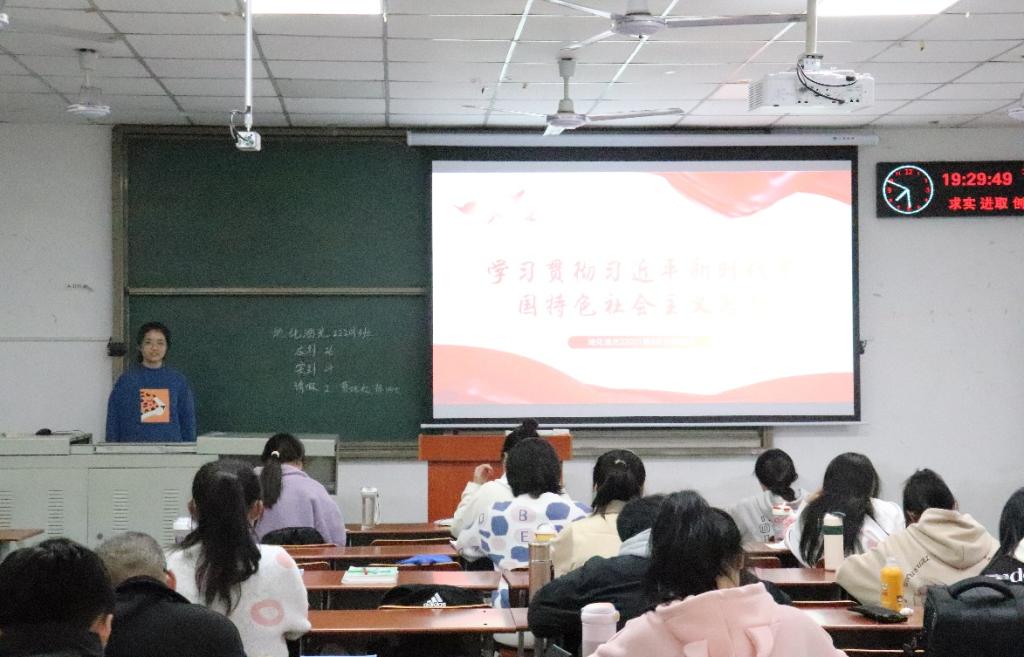 首先由各团支书向同学们阐述了进行此次团会的目的,并就此次团会会议流程进行了介绍,而后播放了一段党的二十大党代表大会的相关会议视频。她强调:“习近平新时代中国特色社会主义思想是全党全国人民为实现中华民族伟大复兴而奋斗的行动指南,只有对其进行深入学习,才能对人生航向有更精准正确的把握,以此促进我们将个人理想与祖国需要相连接。”