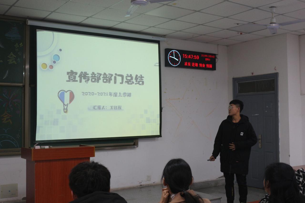 本次大会分为部门总结、个人总结、老师点评、颁发聘任证书四个环节。在部门总结环节,各部门干事对部门在这两个月中完成的工作进行总结与反思,并指出部门存在的问题。大家都表示在今后的工作中,要做出改善,比如办公室在统计每周员工会量化考核、举办资环之星、幸福班级等活动时,表示要在着眼大局的同时,更加注重细节,认真的完善部门工作。紧接着,由各部门干事对自己这两个月来的改变与收获做出个人总结。有的人从思恋家乡而哭泣到站在讲台侃侃而谈,有的人从制作表格绞尽脑汁到剪辑视频得心应手。每个人能力的提升也代表着部门的升华。