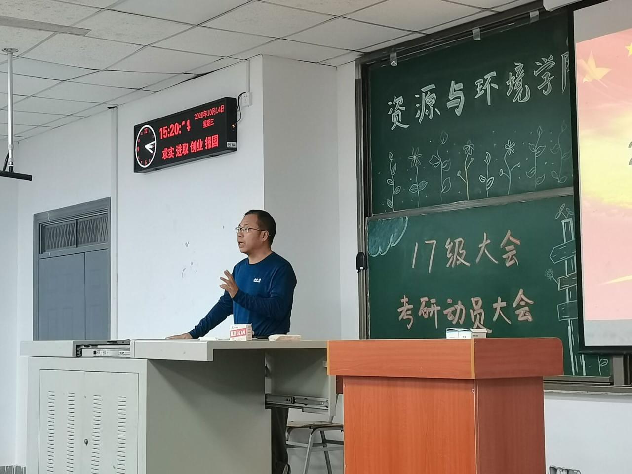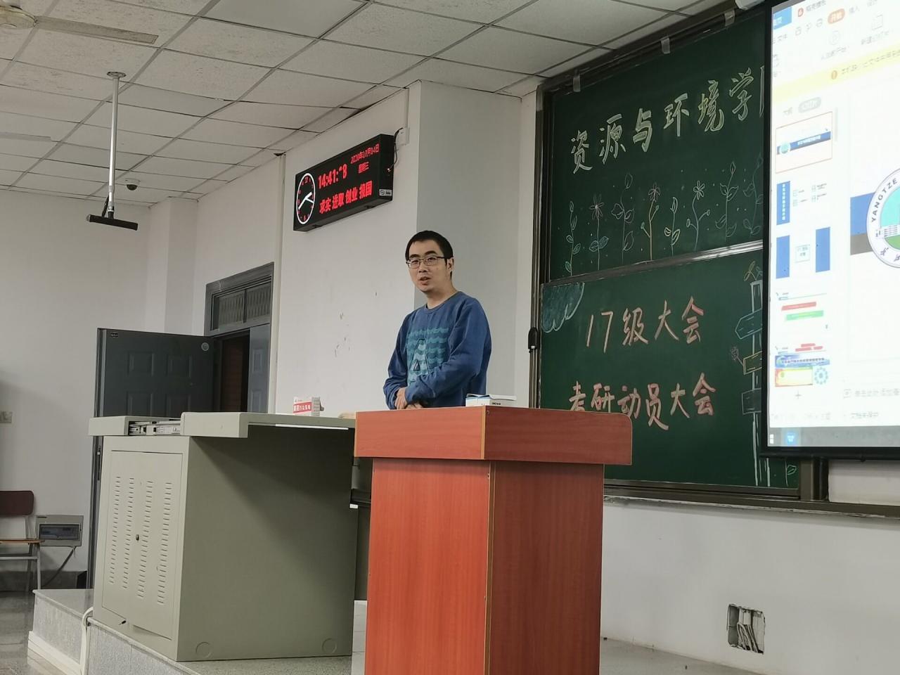 (通讯员 王钰程/图 梁文萱/文)习近平总书记说过:“青年最富有朝气,富有理想。青年兴则国家兴,青年强则国家强。”为加强英国上市官网365考研力量,助力为国家培养有为青年,2020年10月14日下午2时整,英国上市官网365于B教104展开了2021届考研动员大会。本次大会由资环公司团委书记严丽萍主持。资环公司经理文志刚老师、资环公司党委书记张科老师、资环公司副经理徐耀辉老师、地化系肖七林老师、水文与环境系罗杰老师、17级大四本科生、2位研究生代表共同参与了本次大会。