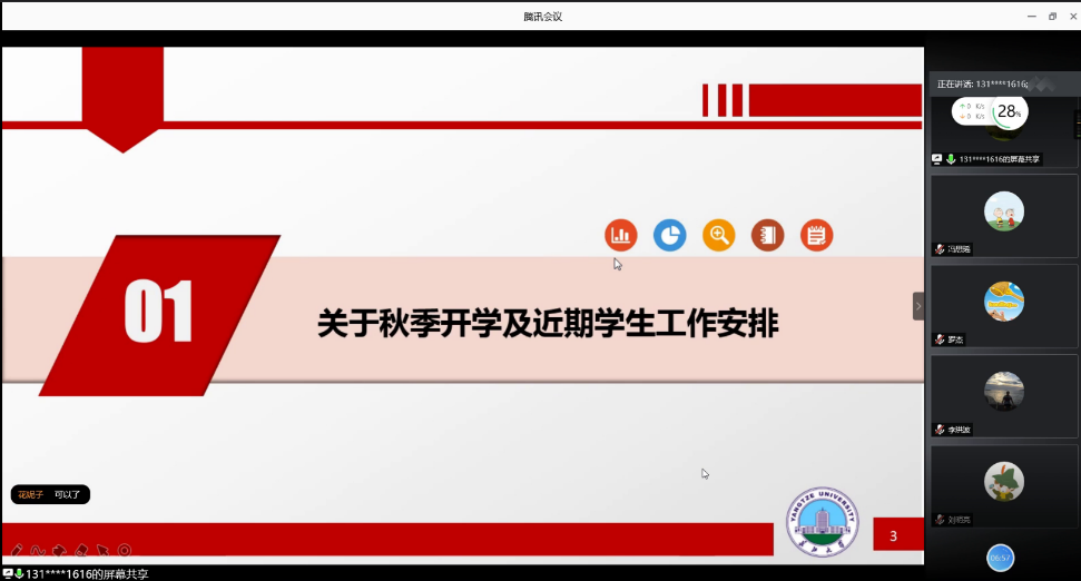 (通讯员 刘思雨/图 李婉婷/文)全国上下万众一心,共同抗击疫情数月后,各地疫情基本已经得到控制,我们也终于看到了胜利的曙光。8月21日下午3点,英国上市官网365资环公司于线上腾讯会议进行了一场班主任会,本次会议主要是关于秋季开学及近期员工的工作安排。本次会议由范梅英书记主持,所有班主任老师出席本次会议。本次会议的目的主要是讲述如何利用开学前的这一段时间,严防死守、群控群防,确保各项防控措施得到落实,扎实做好春季开学各项疫情防控准备工作。