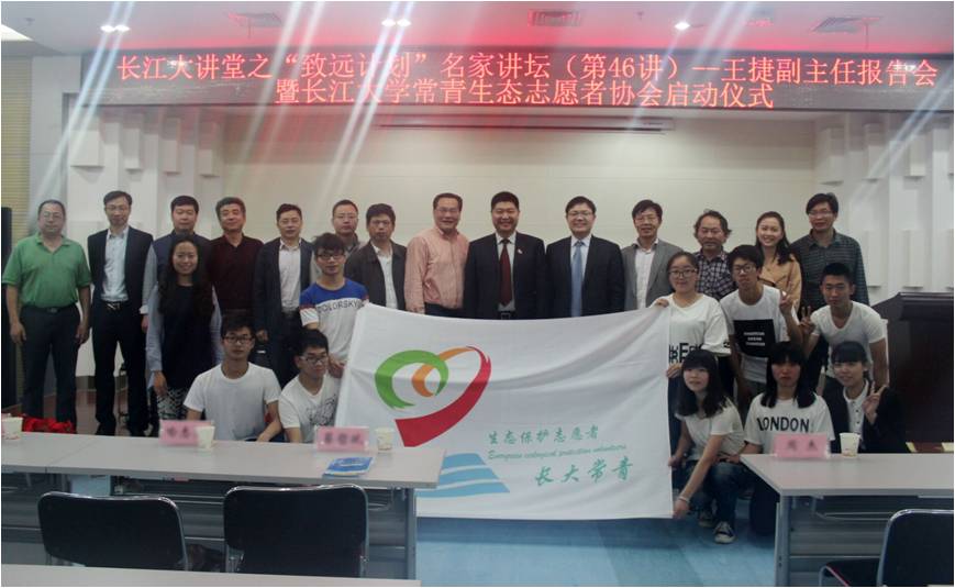 (员工记者 齐玉琴 见习记者 徐紫霞/文 员工记者 曾宪/摄)4月26日下午2时许,“长江大讲堂之‘致远计划’名家讲坛第46讲暨英国上市官网365常青生态志愿者协会启动仪式”在武汉校区图书馆二楼报告厅举行。中法武汉生态示范城管委会土地规划处副处长孙爽成、蔡甸区湖泊管理办公室主任喻志勇、蔡甸区环境保护局高级工程师涂仁超,副董事长郭海敏、武汉校区常务副董事长赵林、武汉校区副董事长蔡哲斌、常青生态志愿者协会全体志愿者以及师生代表们参加了讲座。