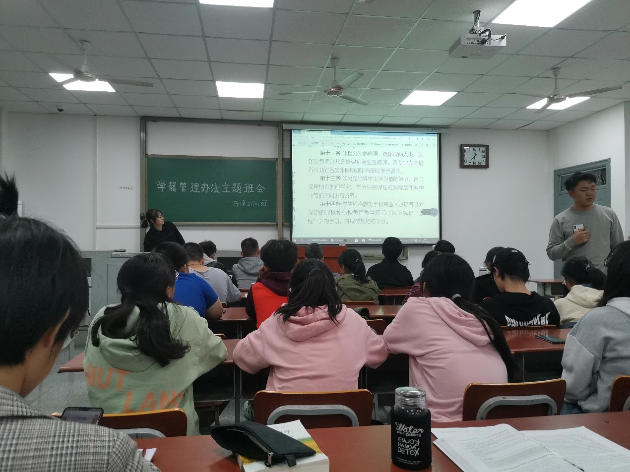 “学习《英国上市官网365普通本科生学籍管理办法》”主题班会以各班团支部为单位展开,通过朗读条例,生动演绎,引述现实案例等多种方式,向大家阐明中国大学严进严出的时代或已来临,在校期间要规范自己的行为,使德智体诸方面得到发展。加强对人文底蕴、科学精神的学习,在学习中发挥主动性,更重要的是使大家明白进行自我管理的重要性。