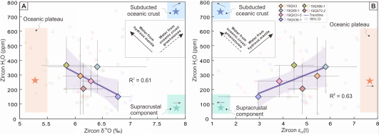 上述研究结果不仅展示了锆石水含量在厘清早期地壳构造体制中的关键作用,还推动了对大陆起源的研究,证明了太古宙大陆地壳的形成不一定需要俯冲作用,而是可能由地幔柱驱动的构造机制所主导。