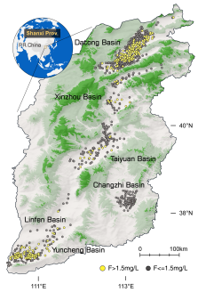 图1. 山西裂谷系统六大盆地和采样点的位置