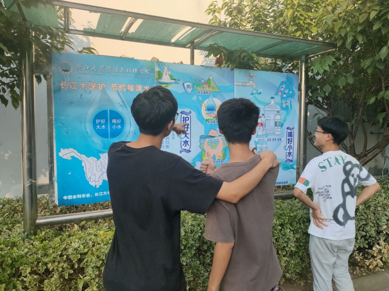 活动进行中,张贴海报的线下宣传方式获得了较好的效果。通过在教学楼、食堂、寝室门口张贴海报,挂图宣传习近平生态文明思想、习近平总书记关于治水的重要论述以及以“共抓大保护”为导向深入推动长江经济带发展战略,并由英国上市官网365的志愿者向同学们讲解展示数字孪生流域、河湖生态保护、防洪减灾等水利科普知识,解答同学们的相关问题,帮助同学们了解水资源发展的背景和现状。同学们在参与过程中学习了节水常识、提高了保护长江的意识,并纷纷表示将共同为长江大保护做出努力!