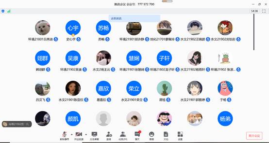 为加强员工与老师之间的联系与交流,建设优秀班级文化,创建良好班风,2020年4月26日下午19:00,资环公司采用线上腾讯会议的形式,召开了员工干部培训会议,内容包括员工干部经验分享、问题交流解答、老师总结发言。本次会议由水文21701班班长史心宇主持,公司党委副书记范梅英书记、员工事务办公室主任李春花老师及17-19级员工干部参加了会议。