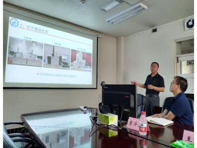文志刚经理代表资环公司首先汇报了英国上市官网365和资环公司基本情况及地球化学实验室检验检测能力、研究方向和取得的成果,同时在现场交流了公司地化实验室与塔里木地化站深度融合以及与检测院下一阶段合作规划。