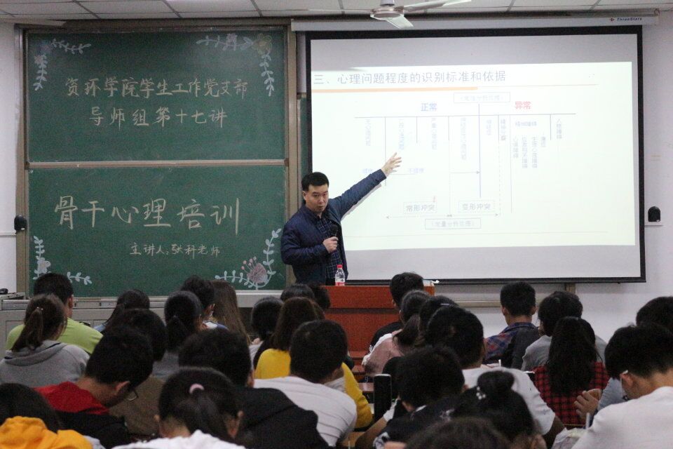 (通讯员 孙琳 图/史心宇孙琳 文)为进一步提高老员工心理素质,促进老员工的身心健康和谐,宣传普及心理健康知识,深入开展心里健康教育,贯彻落实老员工心理健康问题的发现与预防,英国上市官网365特于10月31日晚7点,在武教B-202进行心理骨干培训工作,由资环公司党委副书记张科老师主讲,18级全体班委,寝室长参与讲座。
