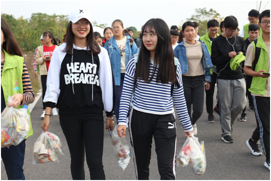 随着活动的进行,同学们手中的垃圾袋逐渐装满。青年志愿者们不怕脏不怕累,主动弯腰、伸手拾起草丛中藏匿的垃圾。也许在我们看来拾垃圾举手之劳,但当它真正成为一项工作,仍需不畏困难坚定的信念。回头看走过的路,干干净净的路面使人心情十分舒畅。看到自己的劳动成果,志愿者们展露出喜悦的笑容。