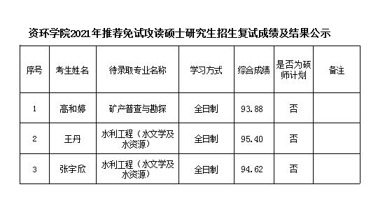 附件1:资环公司2021级推免生拟录取名单